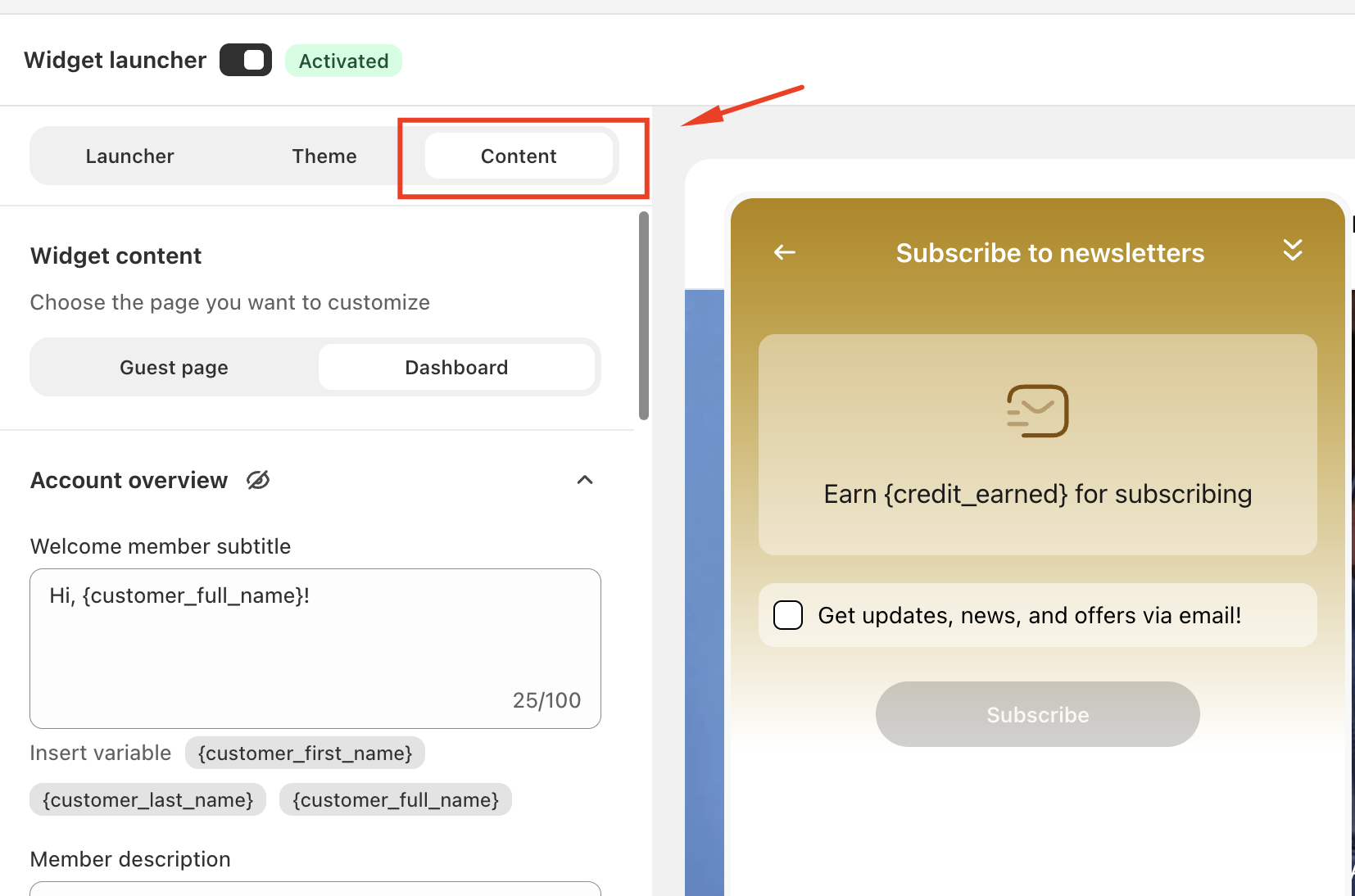 This article explains how to customize the Subscribe to Newsletter reward within the Loyalty Program Launcher and preview your changes before publishing.