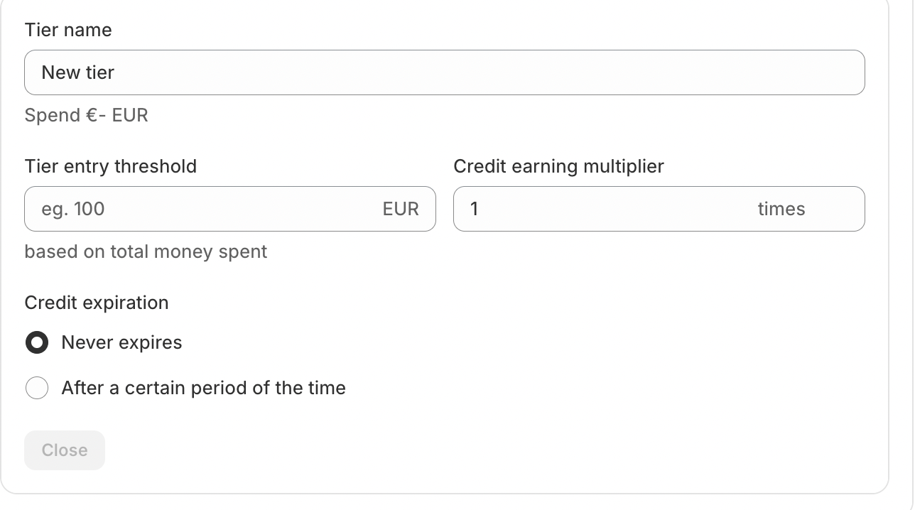 Only orders placed after activation will count toward tiers and credits.
