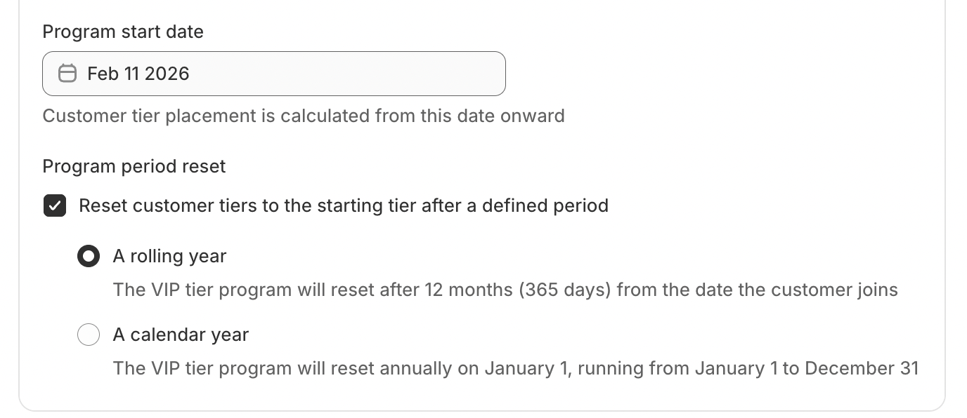 You can define how and when customer tiers reset.