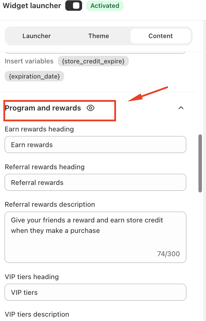 This section allows you to modify how the loyalty widget appears to customers on your storefront.