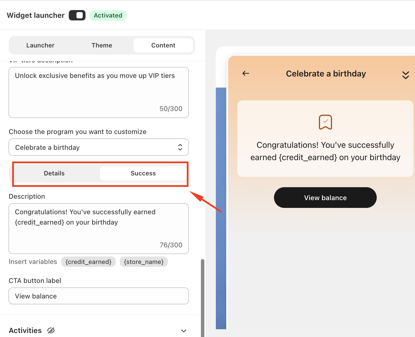 This article explains how to customize the birthday reward content and preview it in the loyalty program launcher.