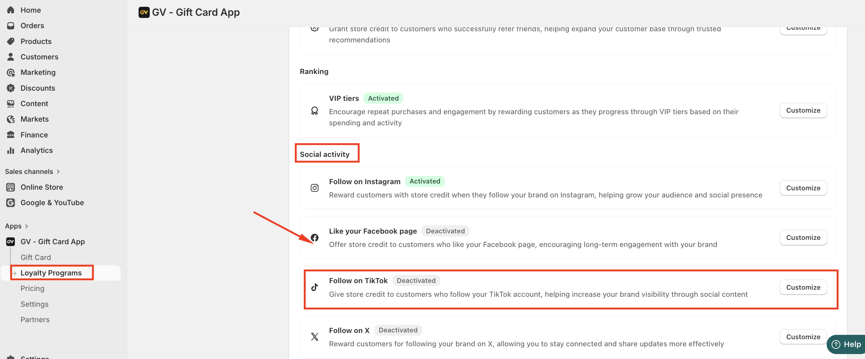Loyalty Program → Loyalty Program → Social Activity → Follow on TikTok