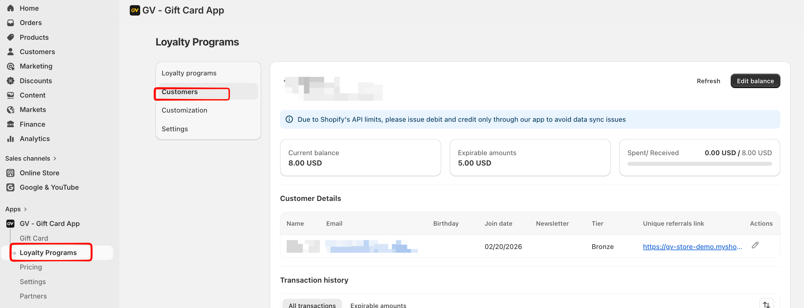 The program appears in the Loyalty Launcher on the storefront.